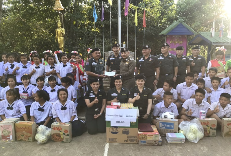 พล.ต.อ.จักรทิพย์ ชัยจินดา ผบ.ตร. พร้อมคณะ เดินทางมาตรวจเยี่ยม ให้กำลังใจ ข้าราชการตำรวจ ปฏิบัติหน้าที่ครู โรงเรียนตำรวจตระเวนชายแดน ที่ 322 ท่าอากาศยานแห่งประเทศไทย เฉลิมพระเกียรติฯ (รร.ตชด.ทอท.) จังหวัดเชียงราย ซึ่งมีข้าราชการตำรวจมาปฏิบัติหน้าที่ครู จำนวน 13 คน และ นักเรียน 141 คน เพื่อเป็นการสร้างกำลังใจและบำรุงขวัญแก่ข้าราชการตำรวจ ที่ปฏิบัติหน้าที่ในพื้นที่ทุรกันดาร พร้อมกล่าวชื่นชมผลการปฏิบัติงานทั้งในด้านการรักษาความมั่นคงปลอดภัยและความสงบเรียบร้อยตามแนวชายแดน การช่วยเหลือประชาชน รวมถึงการดำเนินกิจการของโรงเรียนตำรวจตระเวนชายแดน พร้อมมอบอุปกรณ์ กีฬา ขนม ยาและเวชภัณฑ์ให้แก่เด็กนักเรียน.-สำนักข่าวไทย