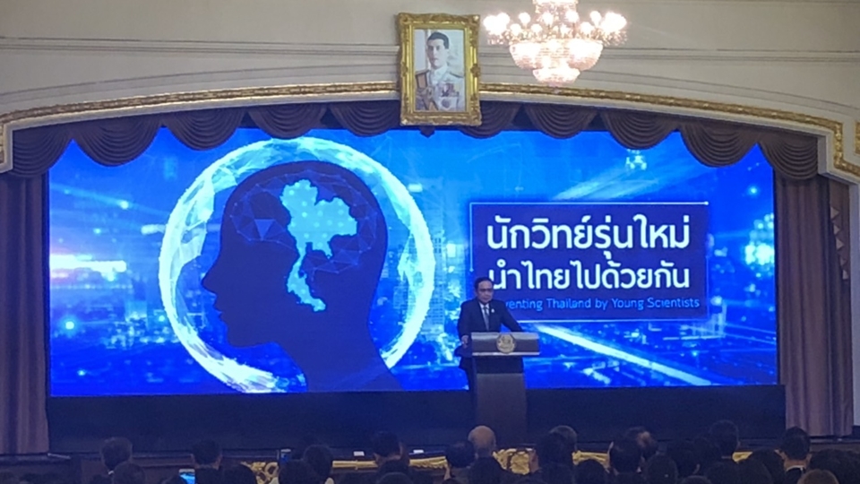 นายกรัฐมนตรี กล่าวว่า รัฐบาลให้กำลังใจงานของนักวิทยาศาสตร์ที่ทำเพื่อคนอื่นและอนาคตประเทศ และพร้อมสนับสนุนงบประมาณให้กับงานวิจัย และใน 5 ปีข้างหน้า นักวิทยาศาสตร์ต้องพัฒนาผลักดันสิ่งที่นำเสนอให้เกิดขึ้นให้ได้ พร้อมพูดติดตลกว่า ไม่เช่นนั้น จะเปลี่ยนหัวข้อ จาก “นักวิทย์รุ่นใหม่ นำไทยไปด้วยกัน” เป็น “นักวิทย์รุ่นเก่า นำไทยสู่อดีต” เรียกเสียงหัวเราะให้นักวิทยาศาสตร์ที่เข้าร่วมงาน