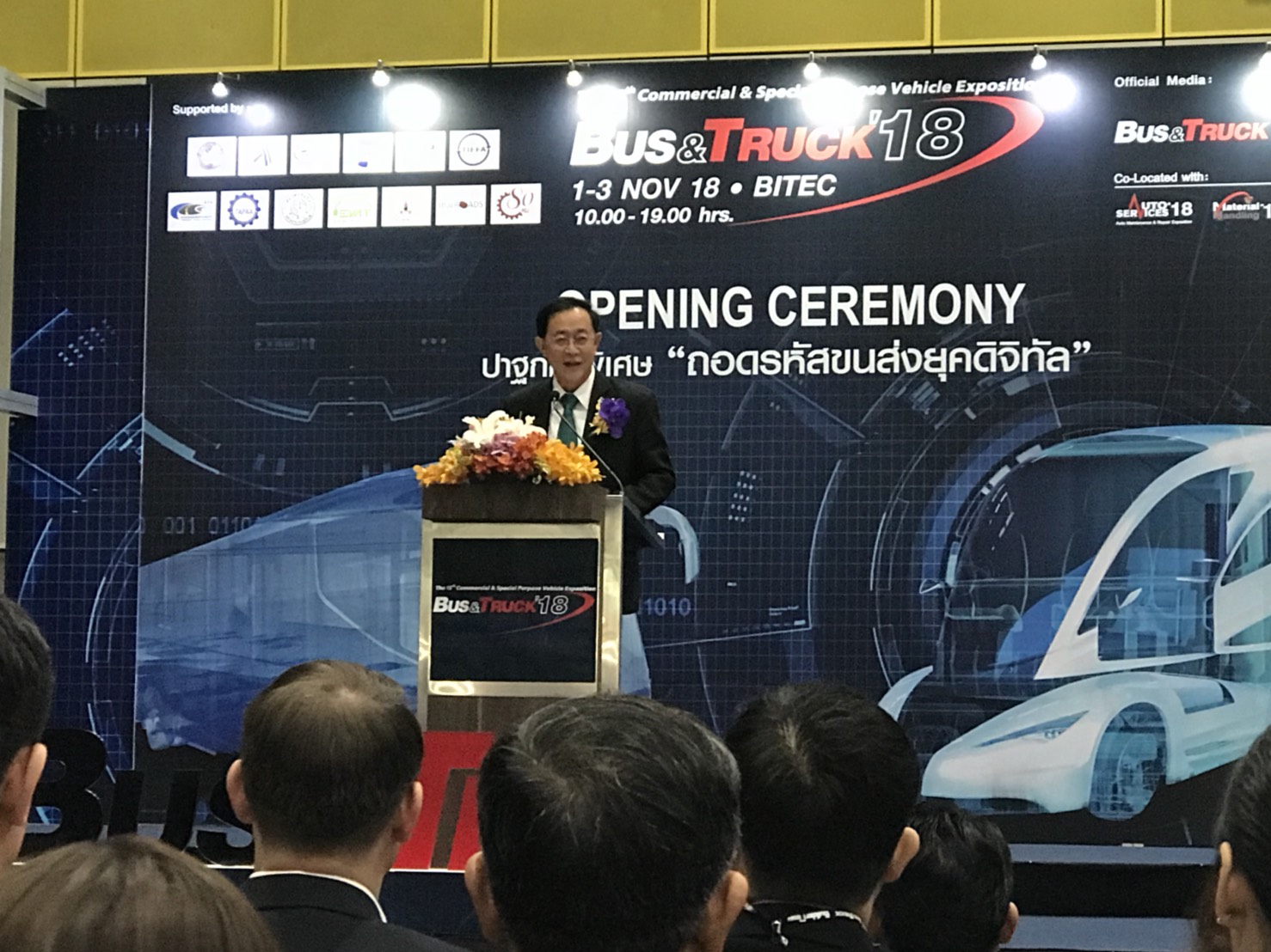 นายอาคม เติมพิทยาไพสิฐ รัฐมนตรีว่าการกระทรวงคมนาคม เป็นประธานในพิธีเปิดงานแสดงรถเพื่อการพาณิชย์และกิจการพิเศษ ครั้งที่ 15 “บัสแอนด์ทรัค’18” พร้อมแสดงปาฐกถาพิเศษในหัวข้อ “ถอดรหัสขนส่งยุคดิจิทัล” โดยนายอาคม กล่าวว่า งานนี้เป็นงานที่นำเสนอนวัตกรรมเทคโนโลยีขนส่งยกระดับการให้บริการ ซึ่งกระทรวงคมนาคมเห็นความสำคัญของระบบขนส่ง เพื่อเป็นศูนย์กลางการค้าการลงทุนของชาติตามแผนพัฒนาระบบขนส่งฉบับที่ 3 (พ.ศ.2560-2564) ทั้งนี้ กระทรวงคมนาคมมีความมุ่งมั่นที่จะพัฒนาคมนาคมขนส่งทุกรูปแบบให้ประชาชนเดินทางอย่างปลอดภัยและสร้างเศรษฐกิจไทยให้เข้มแข็ง การขนส่งยุคดิจิทัลปัจจุบันนำเทคโนโลยีมาใช้ เช่น ระบบจีพีเอส เพื่อใช้ติดตามรถของบริษัทต่าง ๆ ซึ่งเป็นประโยชน์สำหรับผู้ประกอบการ นอกจากนี้ ยังมีกล้องซีซีทีวี เพื่อติดตามดูพฤติกรรมของคนขับรถ
