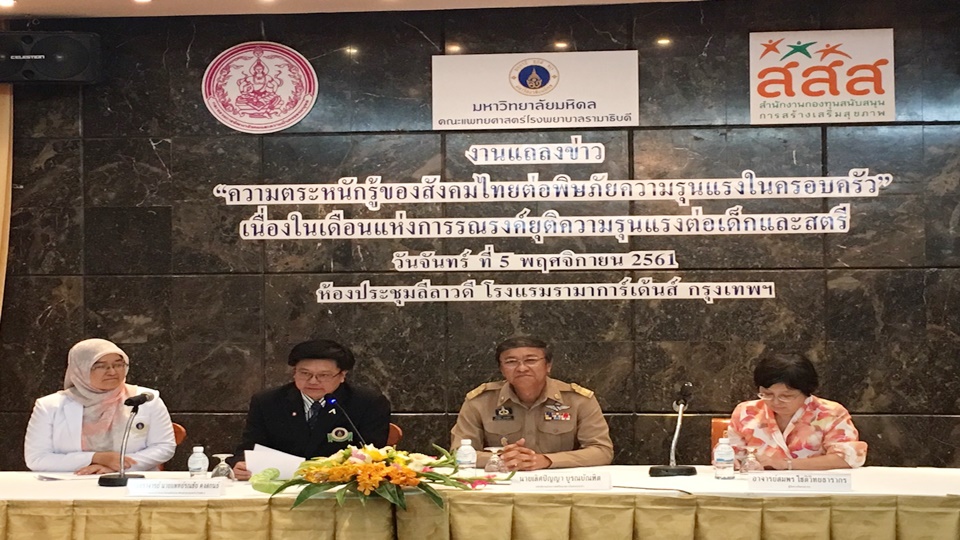 ในการแถลงข่าว ในประเด็น “ความตระหนักรู้ของสังคมไทยต่อพิษภัยความรุนแรงในครอบครัว” เนื่องในเดือนยุติความรุนแรงต่อเด็กและสตรี ตามการประกาศขององค์การสหประชาชาติ นพ.รณชัย คงสกนธ์ ประธานคณะกรรมการส่งเสริมและพัฒนาครอบครัว (กสค.) กล่าวว่า สถานการณ์การใช้ความรุนแรงในครอบครัวปัจจุบันยังเกิดขึ้นทุกวันและที่สำคัญระดับการใช้ความรุนแรงกลับมีแนวโน้มสูงขึ้น ซึ่งองค์การสหประชาชาติระบุว่าประเทศไทยติดอันดับสถิติคดีความรุนแรงต่อเด็กและสตรีเป็นอันดับ1ใน10 ของโลกอย่างต่อเนื่อง