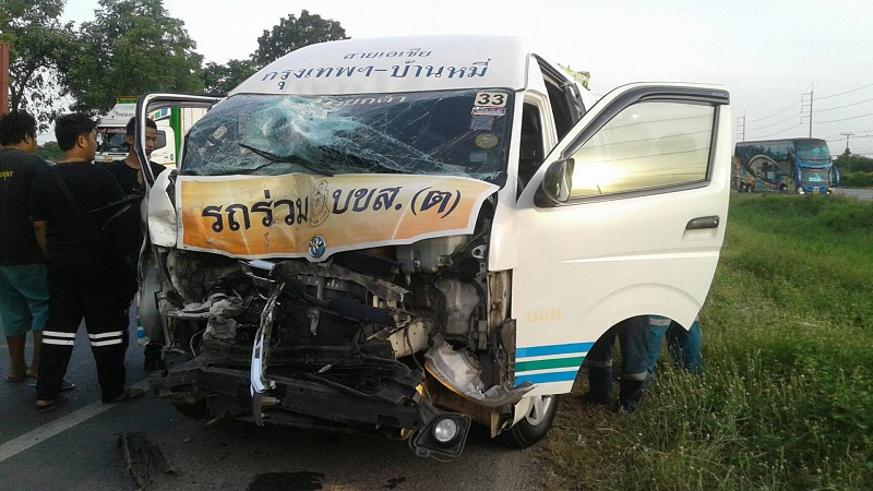 ส่วนรถตู้ที่ถูกชนสภาพพลิกตะแคงอยู่ข้างถนน และคนขับบาดเจ็บเล็กน้อย อายุ 45 ปี ให้การว่า ขณะขับรถมาตามปกติในช่องทางของถนนสายเอเชีย เมื่อมาถึงจุดเกิดเหตุก็ถูกรถร่วม บขส.คันดังกล่าวแล่นเข้าชนท้ายอย่างแรงโดยไม่ทราบสาเหตุ จนรถตัวเองเสียหลักพลิกตะแคง.-สำนักข่าวไทย