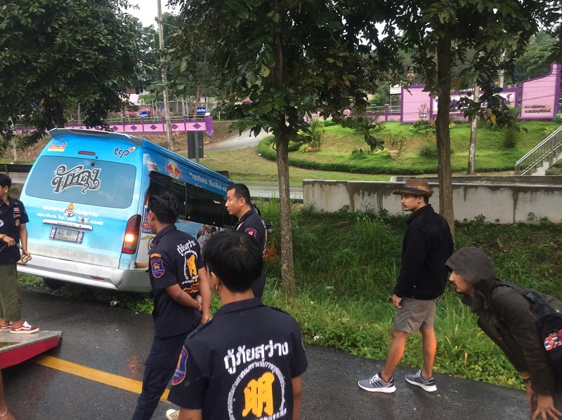 ประจวบคีรีขันธ์ 8 พ.ย.- รถตู้ทีมงานวงพัทลุงประสบเหตุระทึกถนนบางสะพาน-ประจวบฯ เช้านี้ เกิดเฉี่ยวท้ายสิบล้อขณะเดินทางพานักดนตรีจะไปแสดงที่ชลบุรี เคราะห์ดีไม่มีใครเจ็บ
