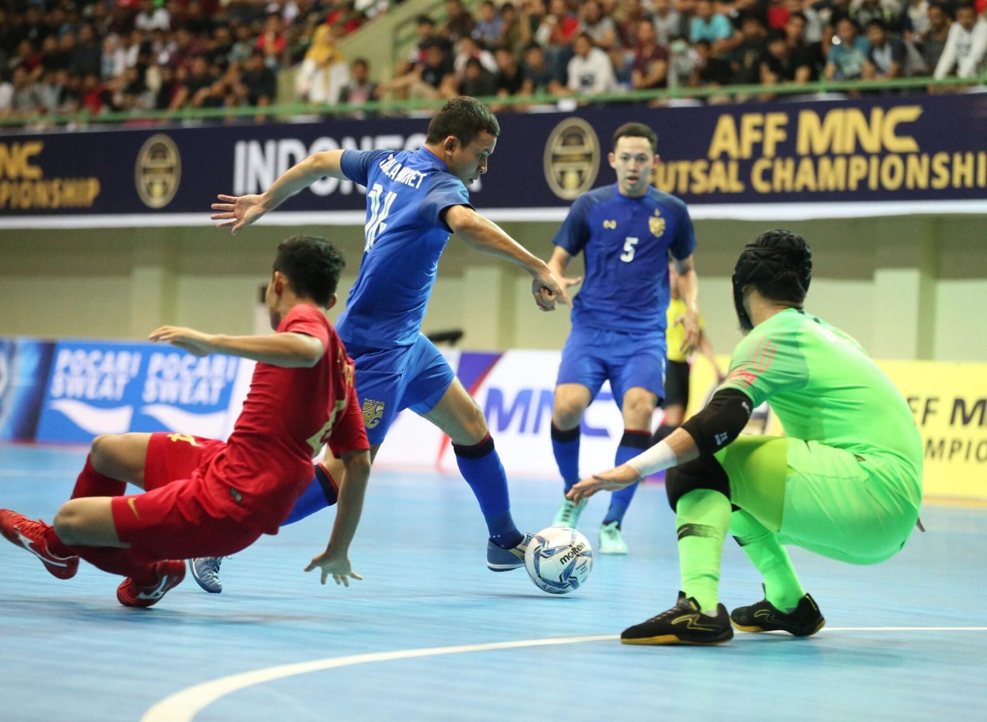 อินโดนีเชีย 9 พ.ย.61- ฟุตซอลชิงแชมป์อาเซียน 2018 รอบรองชนะเลิศ ที่ สนาม กอร์ ยูเอ็นวาย ยอร์กจากาตาร์ ประเทศอินโดนีเซีย ระหว่าง ทีมชาติไทย พบ เจ้าภาพ ทีมชาติอินโดนีเซีย โดยผลงานของทั้งสองทีมในรอบแบ่งกลุ่มเริ่มที่ ทีมชาติไทย เก็บชัยชนะ 3 นัดรวด ผ่านเข้ามาสู่รอบนี้ในฐานะแชมป์สาย บี ส่วน อินโดนีเซีย ชนะ 2 แพ้ 1 ผ่านเข้ารอบมาในฐานะอันดับสองของสาย เอ