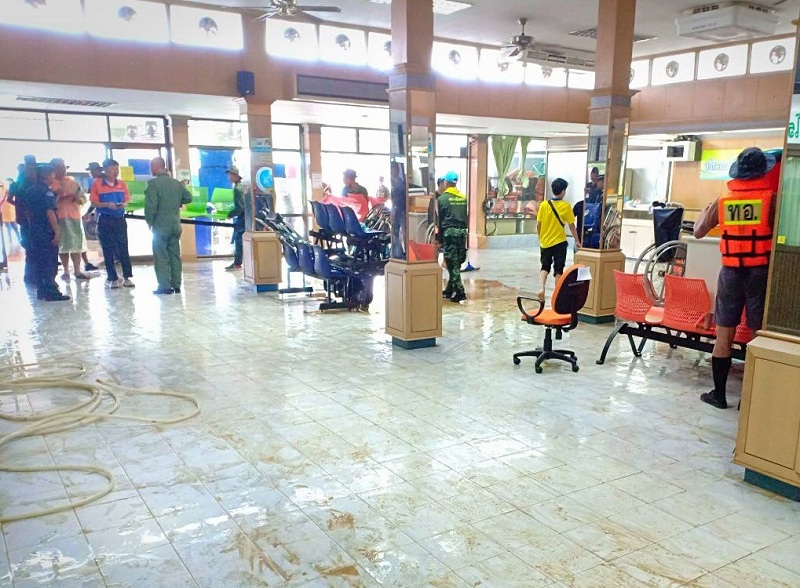 นพ.เชิดชาย ชยวัฑโฒ ผู้อำนวยการโรงพยาบาลบางสะพาน จ.ประจวบคีรีขันธ์ กล่าวว่า หลายหน่วยงานที่มาช่วยกันทำความสะอาดโรงพยาบาล คาดว่าจะเปิดให้บริการได้เร็วและเต็มรูปแบบในวันจันทร์ที่ 12 พ.ย.นี้ นายอำเภอบางสะพานเร่งสำรวจความเสียหายน้ำท่วม