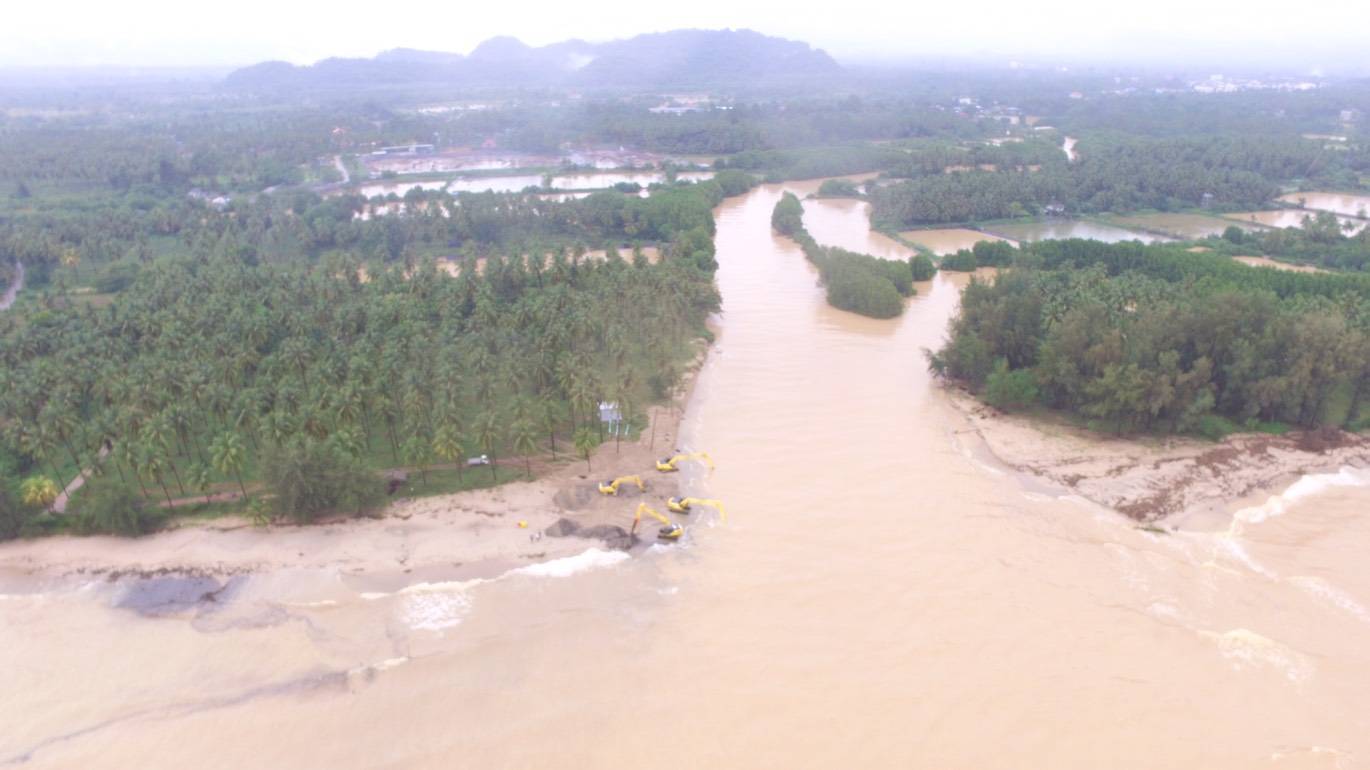 นายทองเปลว กองจันทร์ อธิบดีกรมชลประทาน กล่าวว่า จากภาวะฝนตกหนักในเขตอำเภอบางสะพาน จังหวัดประจวบคีรีขันธ์ วัดปริมาณฝนสะสมสูงสุดช่วงวันที่ 8-9 พฤศจิกายนที่ผ่านมามากกว่า 400 มม. ส่งผลให้น้ำไหลบ่าล้นถนนเพชรเกษมและน้ำล้นตลิ่งเข้าท่วมพื้นที่ริมคลองบางสะพาน บริเวณโรงเรียนอนุบาลบางสะพาน (วัดเขาโบสถ์อุปถัมภ์) โรงพยาบาลบางสะพานนั้น ได้สั่งการให้โครงการชลประทานพื้นที่ระดมรถแบคโฮแขนยาว 2 คัน เก็บเศษสวะและกิ่งไม้ที่กีดขวางบริเวณสะพานต่าง ๆ และอีก 6 คันขุดเปิดขยายปากคลองบางสะพานช่วงปากอ่าวจากความกว้าง 40 เมตรเป็น 60 เมตร เพื่อเร่งระบายน้ำออกสู่ทะเล อีกทั้งนำเครื่องสูบน้ำ 7 เครื่อง ติดตั้งโรงพยาบาลบางสะพาน 2 เครื่อง และโรงเรียนอนุบาลบางสะพาน 2 เครื่องเร่งสูบน้ำออก เพื่อบรรเทาความเดือดร้อนอย่างทันท่วงที และยังคงให้สำรองเครื่องสูบน้ำอีก 3 เครื่อง กรณีมีฝนตกลงมาเพิ่ม