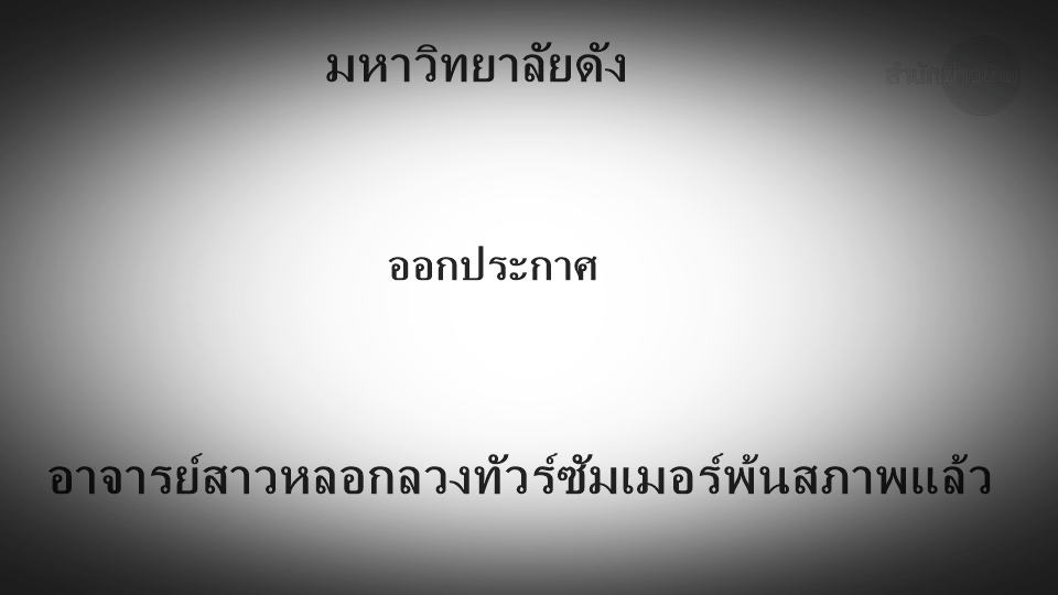 สำนักข่าวไทย 13 พ.ย.-มหาวิทยาลัยกรุงเทพ ออกประกาศเเจ้งบุคลากรภายใน ระบุการพ้นสภาพอาจารย์สาวหัวหน้าภาควิชาอังกฤษ หลอกลวงผู้ปกครองร่วมลงทุนพาเด็กไปเรียนซัมเมอร์ต่างประเทศ แหล่งข่าวเผยไม่มาทำงานก่อนเป็นข่าว เเต่ที่ผ่านมาทำงานตามระบบ มีความสามารถ