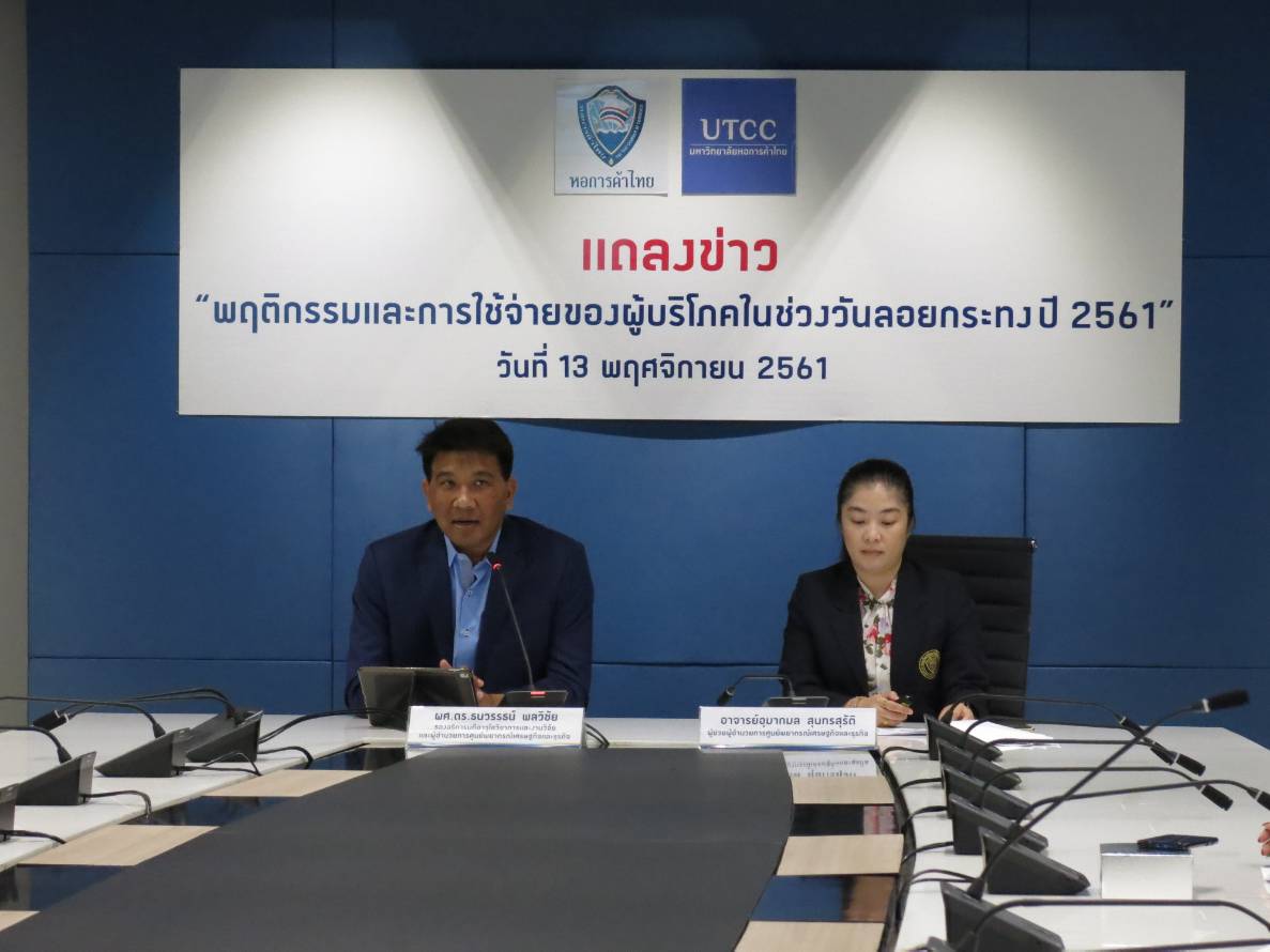 นายธนวรรธน์ พลวิชัย ผู้อำนวยการ ศูนย์พยากรณ์เศรษฐกิจและธุรกิจ มหาวิทยาลัยหอการค้าไทย เปิดเผยถึงผลสำรวจพฤติกรรมการใช้จ่ายของประชาชนในช่วงวันลอยกระทงปี 2561 พบว่า จากกลุ่มตัวอย่าง 1,221 ตัวอย่างทั่วประเทศ ส่วนใหญ่ร้อยละ 76.4 วางแผนออกไปลอยกระทง เพราะเป็นประเพณี เพื่อขอพร เรียนรู้วัฒนธรรม โดยร้อยละ 23.6 จะไม่ไปลอยกระทง เพราะต้องการประหยัดค่าใช้จ่าย กลัวอันตราย และเศรษฐกิจไม่ดี