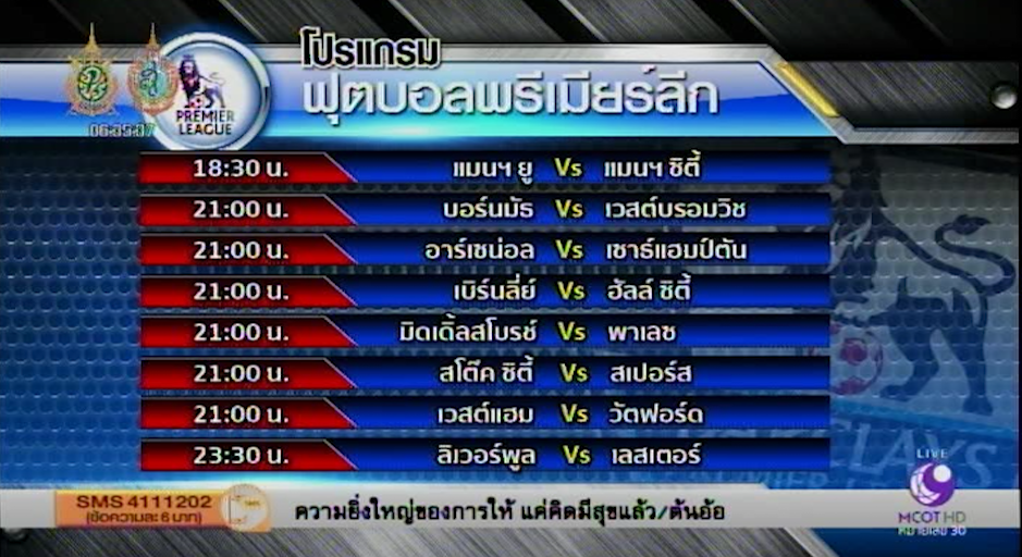 18:30 น.      แมนฯ ยู Vs แมนฯ ซิตี้