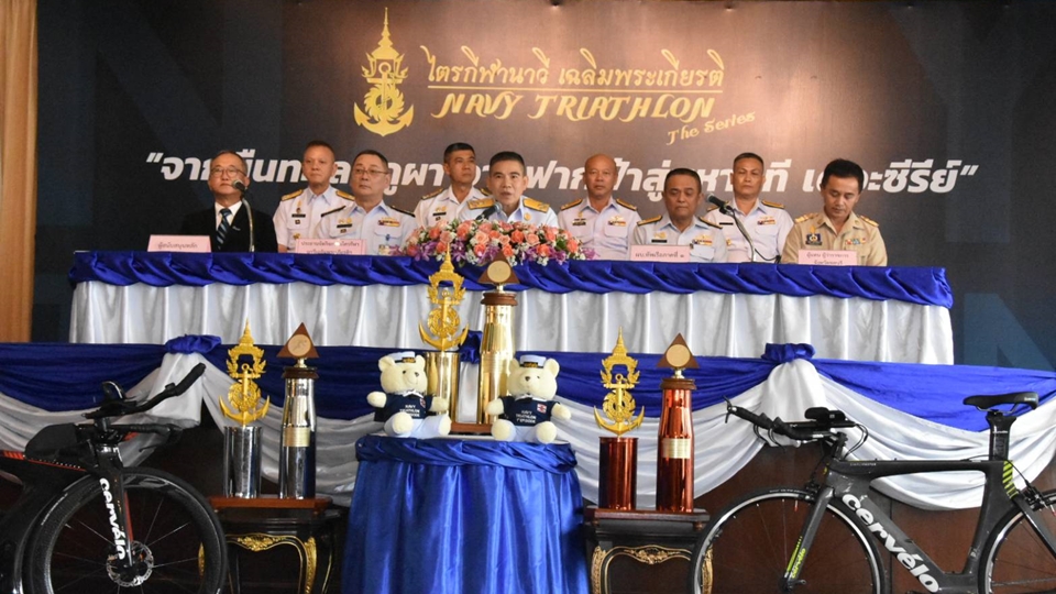 กองทัพเรือ 13 พ.ย.-พล.ร.อ.ลือชัย รุดดิษฐ์ ผู้บัญชาการทหารเรือ เป็นประธานการแถลงข่าว การแข่งขันไตรกีฬานาวี เฉลิมพระเกียรติ The Series จากผืนทะเลสู่ภูผา จากฟากฟ้าสู่มหานที โดยมี พล.ร.อ.กฤษฎาภรณ์ พันธุมโพธิ ประธานกรรมการบริหารสวัสดิการกีฬากองทัพเรือ ในฐานะประธานกรรมการอำนวยการแข่งขัน พล.ร.ท.บรรจบ โพธิ์แดง ผู้บัญชาการทัพเรือภาคที่ 1 พล.ร.ท ชุตินธร ธัตตานนท์ ผู้บัญชาการทัพเรือภาคที่ 2 พล.ร.ท.สิทธิพร มาศเกษม ผู้บัญชาการทัพเรือภาคที่ 3 พล.ร.ต.ระพีพงษ์ โสวรรณ ผู้บัญชาการหน่วยเรือรักษาความสงบเรียบร้อยตามลำแม่น้ำโขง และหัวหน้าสำนักงานจังหวัดชลบุรี ในฐานะผู้แทนผู้ว่าราชการจังหวัดชลบุรี ร่วมในการแถลงข่าว