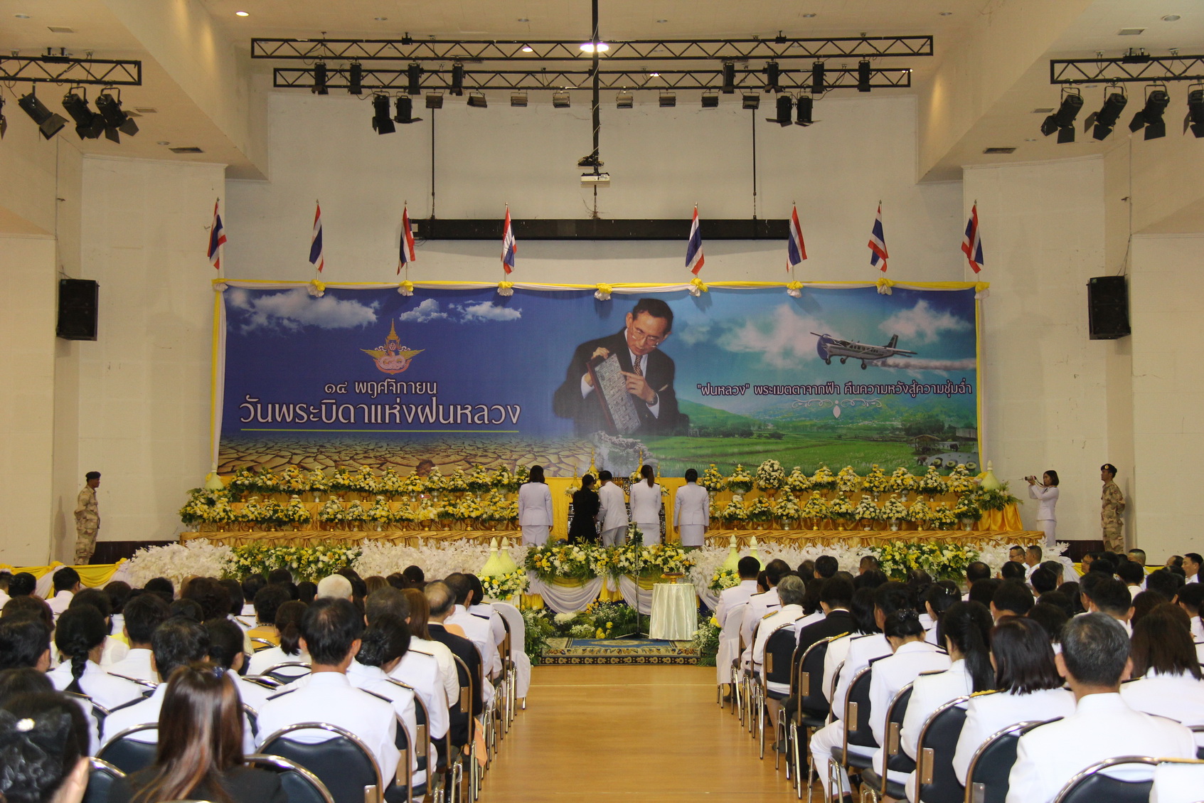 ภูมิภาค 14 พ.ย.- พสกนิกรพร้อมเพรียงกันร่วมประกอบพิธีถวายพานพุ่มเนื่องในวันพระบิดาแห่งฝนหลวง 14 พ.ย. ครบรอบปีที่ 63 เพื่อเฉลิมพระเกียรติและน้อมรำลึกพระมหากรุณาธิคุณในหลวงรัชกาลที่ 9 ทรงค้นคว้าวิจัยนำวิทยาศาสตร์ประยุกต์ใช้เกิดเมฆฝนบรรเทาปัญหาภัยแล้ง