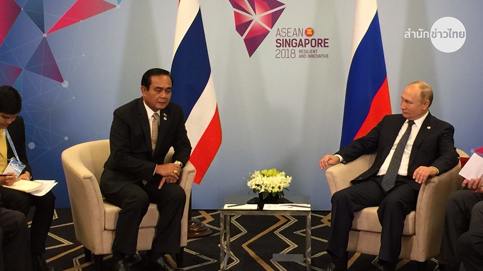 “จิตตานันท์ นิกรยานนท์” ผู้สื่อข่าวสำนักข่าวไทย ที่ติดตามภารกิจ พล.อ.ประยุทธ์ จันทร์โอชา นายกรัฐมนตรี เข้าร่วมประชุมสุดยอดอาเซียน ครั้งที่ 33 ที่สาธารณรัฐสิงคโปร์ ระหว่างวันที่ 13-15 พฤศจิกายน 2561 รายงานว่า พล.อ.ประยุทธ์ จันทร์โอชา นายกรัฐมนตรี ได้หารือทวิภาคีกับนายวลาดิมีร์ ปูติน ประธานาธิบดีแห่งสหพันธรัฐรัสเซีย