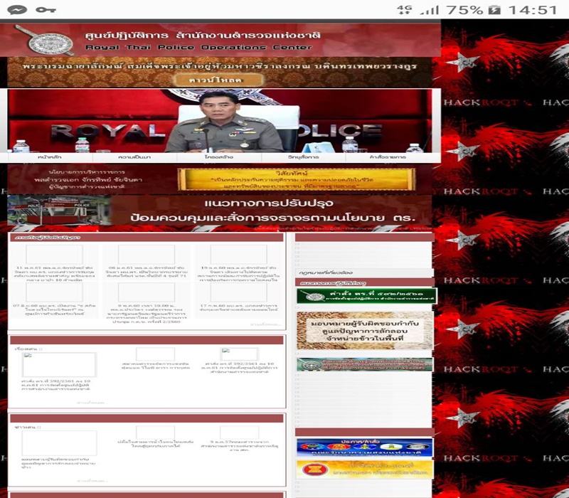 ได้รับรายงานจาก กองบังคับการสนับสนุนทางเทคโนโลยี ว่า เมื่อวันที่ 13 พฤศจิกายน 2561 เวลา 23.47 น. เว็บไซต์ ศูนย์ปฏิบัติการสำนักงานตำรวจแห่งชาติ (ศปก.ตร.) หรือ http://www.rtpoc.police.go.th ถูกผู้ไม่ประสงค์ดีเข้าไปเปลี่ยนภาพแบ๊กกราวด์เป็นโลโก้ของกลุ่มแฮกเกอร์ที่ใช้ชื่อ HACKed BY HACK ROOT และเมื่อกดลิงก์เข้าไปในข้อสั่งการล่าสุด ปรากฏว่ากลายเป็นภาพโลโก้ของกลุ่มแฮกเกอร์ดังกล่าว