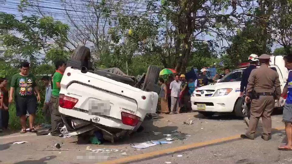 เมื่อเวลา 14.00 น. (14 พ.ย.) ร.ต.อ.สุริยันต์ แก้วพิทูลย์ พนักงานสอบสวน สภ.พนมสารคาม จ.ฉะเชิงเทรา พร้อมหน่วยกู้ชีพและกู้ภัยเร่งช่วยเหลืออุบัติเหตุรถชนกัน 3 คัน บริเวณสามแยกไผ่ขวางปากทางวัดบ้านเล้อ ถนนสายหลวงฤทธิ์ ม.2 ต.เมืองเก่า พบรถกระบะ สีน้ำเงิน สภาพด้านท้ายเสียหายอย่างหนัก แชสซีหัก มีผู้บาดเจ็บติดอยู่ภายใน 2 ราย อีกคันเป็นรถเก๋งสีขาว ด้านหน้าเสียหายเช่นกัน ซึ่งคนขับจอดไว้ข้างทางขณะยืนซื้อกล้วยทอด และถูกกระแทกจากการชนได้รับบาดเจ็บพร้อมแม่ค้า รวมผู้บาดเจ็บ 4 ราย ส่วนอีกคันเป็นรถรุ่นฟอร์จูนเนอร์ สีขาว พลิกหงายท้อง คนขับเสียชีวิตติดอยู่ในรถเป็นชาย อายุ 56 ปี