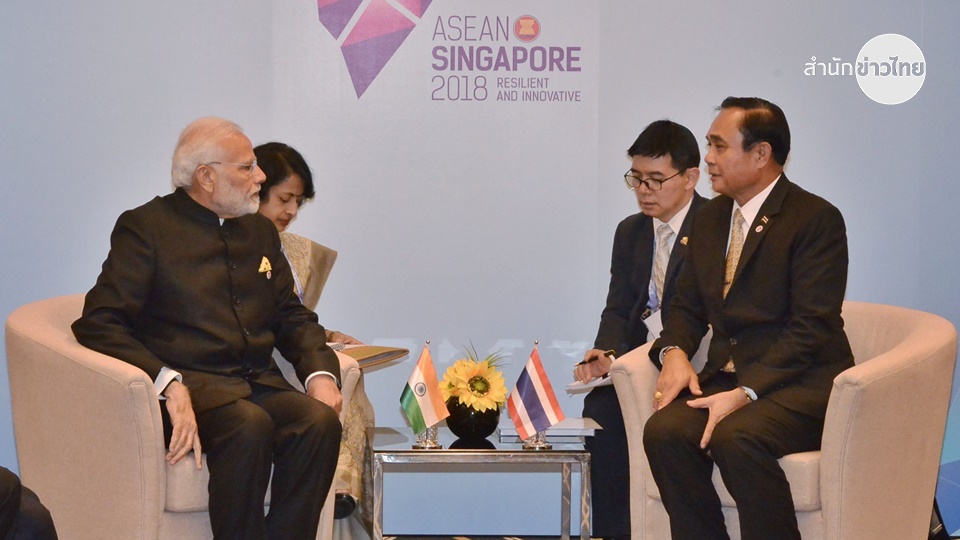 “จิตตานันท์ นิกรยานนท์” ผู้สื่อข่าวสำนักข่าวไทย ที่ติดตามภารกิจ พล.อ.ประยุทธ์ จันทร์โอชา นายกรัฐมนตรี เข้าร่วมประชุมสุดยอดอาเซียน ครั้งที่ 33 ที่สาธารณรัฐสิงคโปร์ ระหว่างวันที่ 13-15 พฤศจิกายน 2561 รายงานว่า พล.อ.ประยุทธ์ จันทร์โอชา หารือทวิภาคีกับนายนเรนทร โมที (Mr. Narendra Modi) นายกรัฐมนตรีสาธารณรัฐอินเดีย ระหว่างการเข้าร่วมการประชุมสุดยอดอาเซียน ครั้งที่ 33 และการประชุมสุดยอดที่เกี่ยวข้อง ณ ห้องหารือทวิภาคี ศูนย์การประชุมและนิทรรศการซันเทค สาธารณรัฐสิงคโปร์