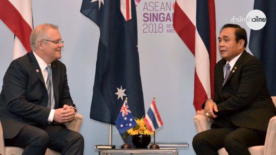 “จิตตานันท์ นิกรยานนท์” ผู้สื่อข่าวสำนักข่าวไทย ที่ติดตามภารกิจ พล.อ.ประยุทธ์ จันทร์โอชา นายกรัฐมนตรี เข้าร่วมประชุมสุดยอดอาเซียน ครั้งที่ 33 ที่สาธารณรัฐสิงคโปร์ ระหว่างวันที่ 13-15 พฤศจิกายน 2561 รายงานว่า นายกรัฐมนตรีใช้โอกาสที่เข้าร่วมประชุมสุดยอดอาเซียน ครั้งที่ 33 หารือทวิภาคีกับนายสกอตต์ มอร์ริสัน (The Honourable Scott Morrison) นายกรัฐมนตรีเครือรัฐออสเตรเลีย ณ ห้องหารือทวิภาคี ศูนย์การประชุมและนิทรรศการซันเทค สาธารณรัฐสิงคโปร์