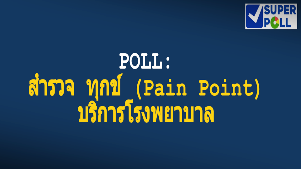 นายนพดล กรรณิกา ผู้อำนวยการสำนักวิจัยซูเปอร์โพล (SUPER POLL) นำเสนอผลสำรวจภาคสนาม เรื่องสำรวจทุกข์ (Pain Point) จากบริการโรงพยาบาล จำนวนทั้งสิ้น 2,587 คน โดยดำเนินโครงการระหว่าง 1–16 พฤศจิกายน ที่ผ่านมา พบว่าครึ่งหนึ่งหรือร้อยละ 50.6 ใช้สิทธิในการรักษาด้วยบัตรประกันสุขภาพถ้วนหน้า หรือบัตรทอง รองลงมาคือ ร้อยละ 28.0 ใช้สิทธิประกันสังคม ,ร้อยละ 11.6 ใช้สิทธิข้าราชการ เจ้าหน้าที่รัฐ ,ร้อยละ 7.2 ใช้สิทธิประกันชีวิต บริษัทเอกชน และร้อยละ 2.6 ใช้อื่น ๆ ตามลำดับ