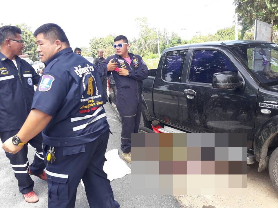 เมื่อเวลา 12.00 น. (9 ก.ย.) ร.ต.อ.จันดา เดิมพันธ์ ร้อยเวร (สอบสวน) สภ.บางละมุง จ.ระยอง รับแจ้งอุบัติเหตุมีผู้เสียชีวิตถูกรถชนบริเวณจุดกลับรถ ถนนเนินกำนันสาย 36 หลัก ก.ม.ที่ 3 ขาเข้าระยอง จึงประสานมูลนิธิสว่างบริบูรณ์เมืองพัทยาร่วมตรวจสอบพบศพชายอยู่ใต้ท้องรถกระบะ สีดำ ทะเบียน ผล 4622 ชลบุรี ใกล้กันมีรถจักรยานยนต์พ่วงข้างขายก๋วยเตี๋ยวสภาพพังยับเยิน