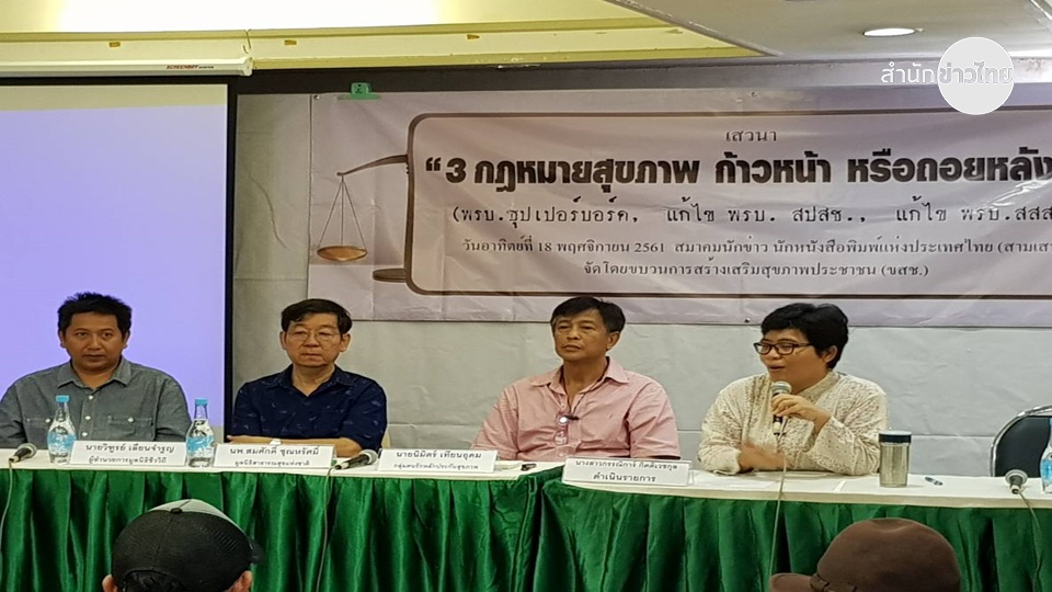 สมาคมนักข่าวฯ18 พ.ย.- เปิดเวทีถก 3 กฎหมายสุขภาพที่ส่งผลกับการปฏิรูประบบสุขภาพของไทย พ.ร.บ.ซุปเปอร์บอร์ด, พ.ร.บ.สปสช. พ.ร.บ.สสส. นักวิชาการชี้เข้าข่ายทำหลักประกันสุขภาพถอยหลังเข้าคลอง เอื้อผลประโยชน์บริษัทใหญ่