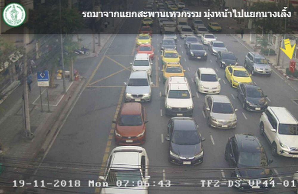กทม. 19 พ.ย.-สวพ.FM91 รายงานจราจรเช้าวันจันทร์ ถนนนครสวรรค์ มุ่งหน้าแยกนางเลิ้ง รถติดขัด ท้ายแถวสะสมใกล้เคียงแยกจักรพรรดิพงษ์