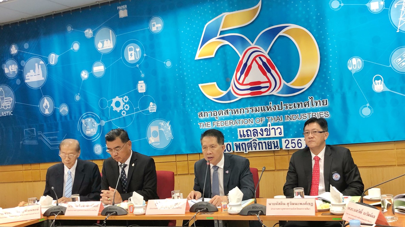 “ผู้ประกอบการมีความกังวลผลกระทบจากสงครามการค้า ส่วนปัจจัยที่หนุนการเติบโตเศรษฐกิจคือ ความคืบหน้าการลงทุนโครงสร้างพื้นฐานภาครัฐ การท่องเที่ยว การส่งเสริมการลงทุนในอุตสาหกรรมเป้าหมายในอีอีซี การลงทุนเอกชน และการเบิกจ่ายงบประมาณภาครัฐและสิ่งที่เอกชนอยากเห็นเพิ่มเติม คือ การสนับสนุนการใช้สินค้าไทย MADE IN THAILAND” ประธาน ส.อ.ท. กล่าว -สำนักข่าวไทย
