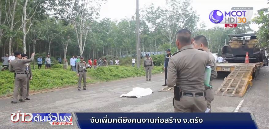 ตรัง 28 พ.ย.- จับเจ้าของบริษัทรับเหมาก่อสร้าง คดีลอบยิงคนงานก่อสร้างวัย 34 ปี เสียชีวิตบริเวณท้ายรถบรรทุกเครื่องจักร อ.เมืองตรัง เมื่อวันที่ 16 ส.ค. เบื้องต้นผู้ต้องหายังให้การปฏิเสธ ส่วนคดีเผารถแบ็กโฮ มือเผาถูกดำเนินคดี และสั่งฟ้องไปแล้ว