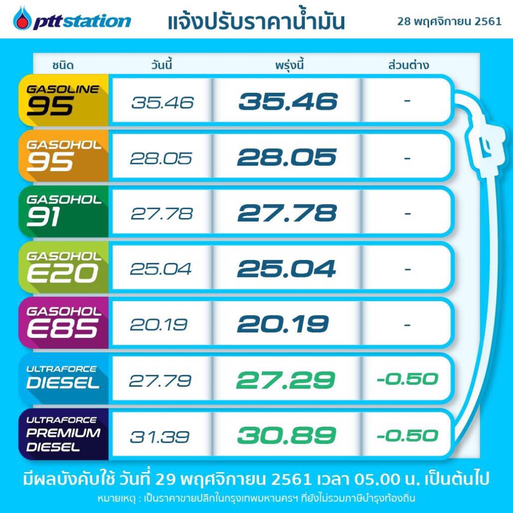 50 สตางค์ต่อลิตร มีผล 05.00 น. วันพรุ่งนี้(29 พ.ย.)