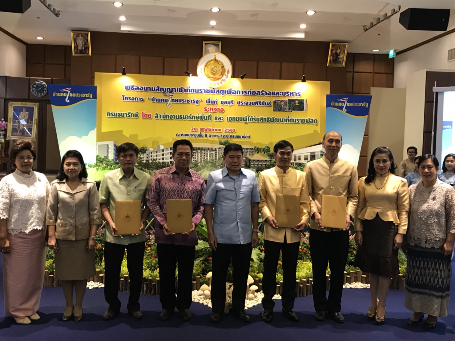 นายอำนวย ปรีมนวงศ์ อธิบดีกรมธนารักษ์ เป็นประธานพิธีลงนามสัญญาเช่าที่ดินราชพัสดุเพื่อการก่อสร้างและบริหารโครงการ “บ้านคนไทยประชารัฐ” ในพื้นที่ชลบุรี และประจวบคีรีขันธ์ เพื่อเปิดให้ประชาชนกลุ่มเป้าหมาย 3 กลุ่ม ได้แก่ 1. ประชาชนที่ได้รับสิทธิบัตรสวัสดิการแห่งรัฐ 2. ประชาชนที่มีรายได้ไม่เกิน 35,000 บาทต่อคนต่อเดือน และ 3. ประชาชนทั่วไป ให้มีที่อยู่อาศัยเป็นกรรมสิทธิ์ของตนเองบนที่ดินราชพัสดุ รูปแบบการก่อสร้างที่อยู่อาศัย เป็นทั้งบ้านแฝด บ้านแถว อาคารชุดพักอาศัย มีพื้นที่ใช้สอยไม่น้อยกว่า 28 ตารางเมตร