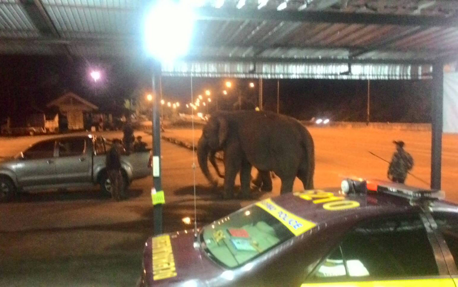 ด.ต.เขมการณ์ คงฉ้ง เจ้าหน้าที่ตำรวจประจำเวรหน่วยบริการประชาชนตำรวจทางหลวง ถนนซุปเปอร์ไฮเวย์ ลำปาง – เชียงใหม่ หลักกิโลเมตรที่ 496-497 ต.เวียงตาล อ.ห้างฉัตร จ.ลำปาง แจ้งขอความช่วยเหลือจากศูนย์อนุรักษ์ช้างไทยช่วงเช้ามืดวันนี้ (8 ก.ย.) เพื่อต้อนช้างป่าแม่ลูกกลับเข้าไปในป่า เพราะออกมาเดินอยู่ริมถนน และยังเดินเข้ามาที่หน่วยบริการประชาชนตำรวจทางหลวงที่มีประชาชนมาจอดรถนั่งพักอยู่ประมาณ 10 คน พากันวิ่งแตกตื่น อีกทั้งช้างยังพยายามใช้งวงดันประตูป้อมตำรวจ ซึ่งเจ้าหน้าที่ด้านและคนอื่น ๆ ช่วยกันดันต้านประตูไว้ แต่สู้แรงช้างไม่ได้ จึงต้องพากันวิ่งหนี จากนั้นช้างก็เข้ามาได้เพียงครึ่งตัว และเห็นว่าภายในไม่มีอาหาร จึงเดินออกไป และกินข้าวในหม้อของชาวที่มากางเต้นท์นอนพัก