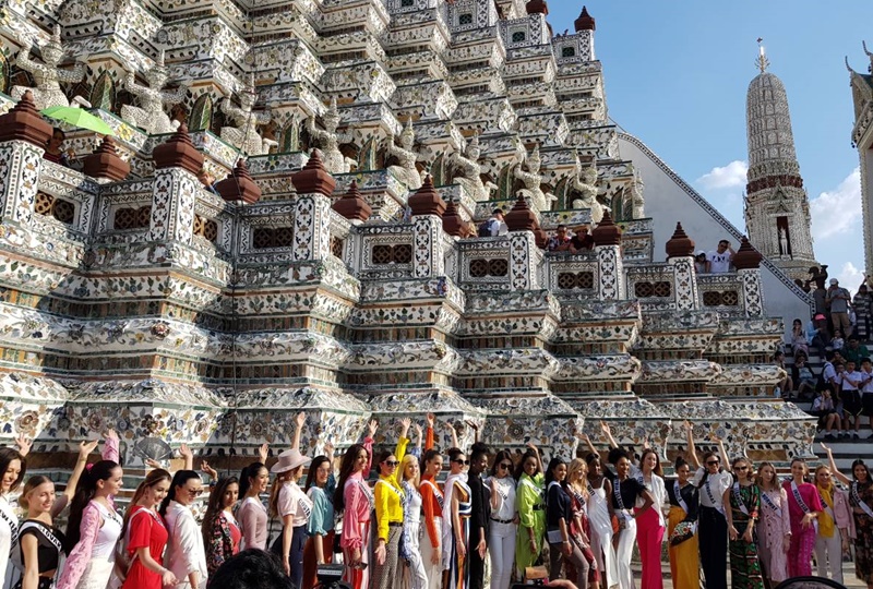 กทม. 3 ธ.ค.- กองประกวดมิสยูนิเวิร์ส 2018 พา 59 สาวงามล่องเจ้าพระยา ชมความงดงามพระปรางค์วัดอรุณ