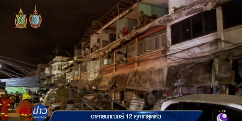 พล.ต.ท.ศานิตย์ มหถาวร รักษาราชการแทน ผบช.น. พร้อมด้วย นายอมร กิจเชวงกุล รองผู้ว่าฯ กทม. และเจ้าหน้าที่ที่เกี่ยวข้อง เข้าตรวจสอบที่เกิดเหตุระเบียงอาคารพานิชย์ 12 คูหา ข้างตลาดประชานิเวศน์ 1 ถล่มลงมาจากชั้น3 ทับรถยนต์ของประชาชนได้รับความเสียหาย 7 คัน