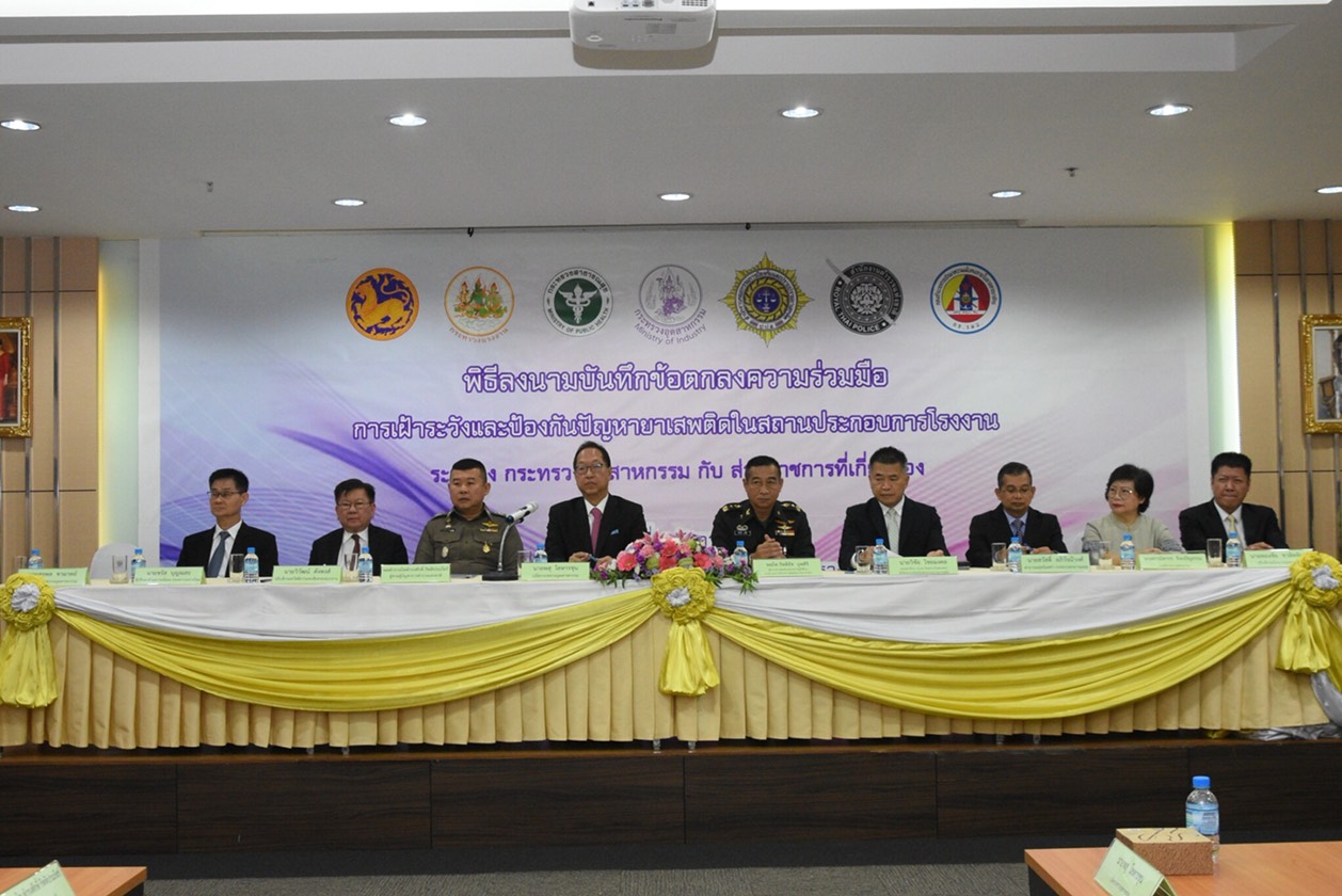 สำหรับโครงการโรงงานทั่วไทยร่วมใจต้านภัยยาเสพติด มีสถานประกอบการกว่า 1,000 โรงงานเข้าร่วม และมีส่วนราชการที่เกี่ยวข้อง 6 หน่วยงานร่วมกันขับเคลื่อนโครงการฯ ในช่วง 3 เดือน สำหรับพิธีลงนามบันทึกข้อตกลงความร่วมมือการเฝ้าระวังและป้องกันปัญหายาเสพติดในสถานประกอบการโรงงาน เป็นการลงนามร่วมกันระหว่างกระทรวงอุตสาหกรรม กับกระทรวงมหาดไทย กระทรวงแรงงาน กระทรวงสาธารณสุข สำนักงานคณะกรรมการป้องกันและปราบปรามยาเสพติด สำนักงานตำรวจแห่งชาติ และกองอำนวยการรักษาความมั่นคงในราชอาณาจักร เพื่อให้มีการทำงานร่วมกันแบบบูรณาการ นอกจากนี้ ยังจัดให้มีพิธีลงนามบันทึกข้อตกลงความร่วมมือการเฝ้าระวังและป้องกันปัญหายาเสพติดเป็นการลงนาม ระหว่างอธิบดีกรมโรงงานอุตสาหกรรมร่วมกับสถานประกอบการโรงงานเขตพื้นที่กรุงเทพมหานคร และระหว่างอุตสาหกรรมจังหวัดทั่วประเทศ กับสถานประกอบการโรงงานในพื้นที่ ณ ที่ทำการสำนักงานอุตสาหกรรมจังหวัด โดยดำเนินการพร้อมกับส่วนกลางผ่านระบบ VDO Conference และ Facebook Live. -สำนักข่าวไทย