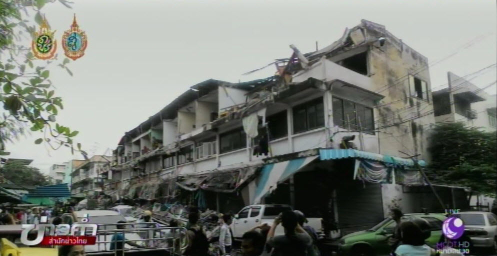 กรุงเทพฯ 7 ก.ย.-เมื่อเวลา 17.50 น.ที่ผ่านมา เกิดเหตุระเบียงอาคารพาณิชย์ใกล้ตลาดประชานิเวศน์พังถล่ม เบื้องต้นมีรถยนต์เสียหายเกือบ 10 คัน ขณะนี้เจ้าหน้าที่อยู่ระหว่างเข้าตรวจสอบความเสียหาย และค้นหาผู้ที่อาจติดอยู่ภายในซากอาคาร.-สำนักข่าวไทย
