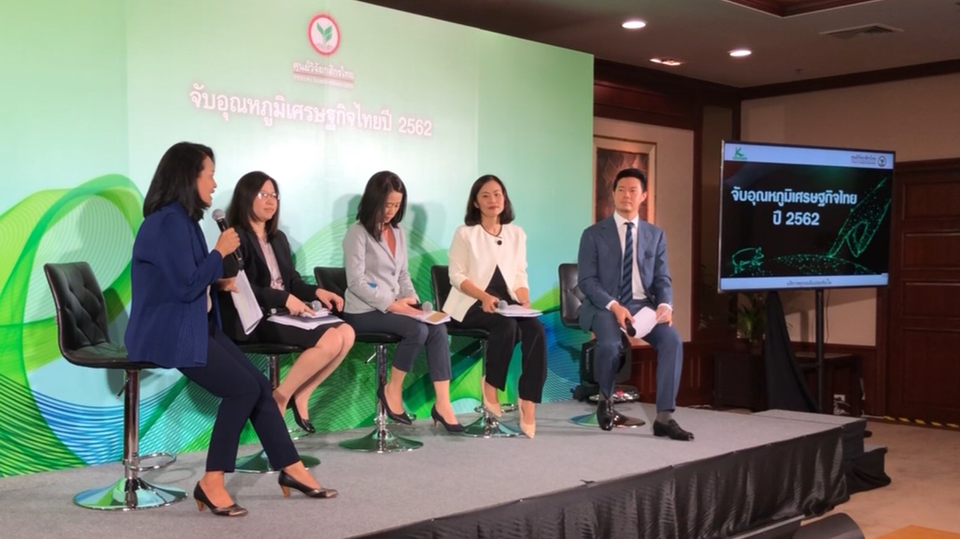 ศูนย์วิจัยกสิกรไทยได้จัดงานเสวนาเรื่อง “จับอุณหภูมิเศรษฐกิจปี 62…หมูจริงหรือไม่?” ซึ่งสะท้อนมุมมองต่อเศรษฐกิจไทยไตรมาส 4 ว่า คงขยายตัวดีขึ้นมาที่กว่าร้อยละ 4 จากร้อยละ 3.3 ในไตรมาส 3 หลังภาครัฐมีมาตรการกระตุ้นเศรษฐกิจเพิ่มเดือนธันวาคม บวกกับการท่องเที่ยวเริ่มฟื้นตัวขึ้น การบริโภคและการลงทุนภาคเอกชนยังรักษาระดับการขยายตัวไว้ได้ ส่วนประมาณการจีดีพีปี 2561 นั้น มีการปรับลดลงจากประมาณการเดิมที่ร้อยละ 4.6 มาที่ร้อยละ 4.3 ซึ่งเป็นไปตามภาพการส่งออกและการท่องเที่ยวที่ผ่อนแรงส่งลง โดยเฉพาะในช่วงไตรมาส 3 ของปี