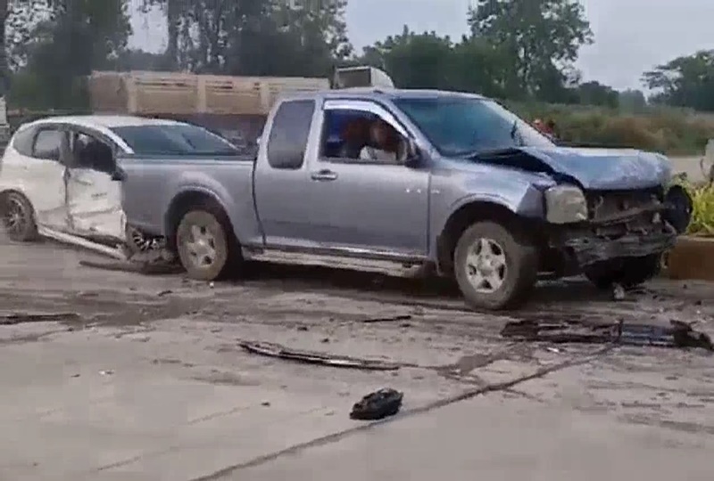 จากเหตุรถกระบะอีซูซุ สีเทา ทะเบียน บน 4504 ลำปาง ไล่ชนรถเก๋ง ฮอนด้าแจ๊ส สีขาว ทะเบียน กธ 9539 ลำปาง พังยับ เมื่อเช้าวันนี้ บริเวณหน้าถนนสบเมาะ-ห้วยรากไม้ อำเภอแม่เมาะ จังหวัดลำปาง ทำให้มีผู้ได้รับบาดเจ็บ 2 คน