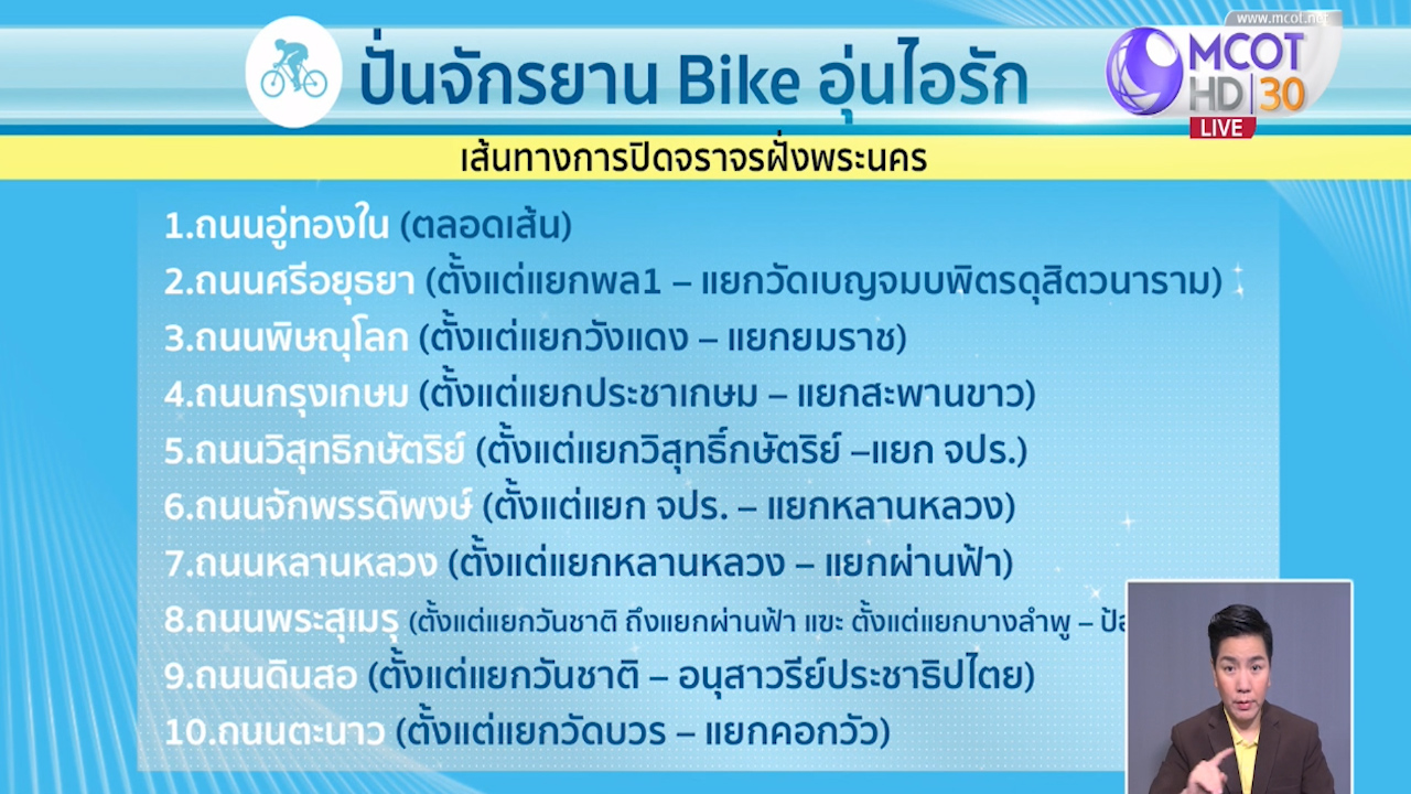กทม.9 ธ.ค.- ประชาสัมพันธ์ แผนการจัดระบบการจราจรกิจกรรมปั่นจักรยาน Bike อุ่นไอรัก 9 ธันวาคม 2561 ซึ่งจะปิดจราจรฝั่งพระนคร-ฝั่งธนบุรี ตั้งแต่เวลา 12.00 – 20.00 น. เส้นทางปั่นจักรยาน