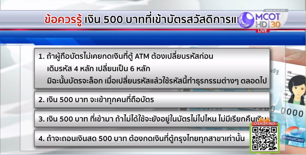 9. ผู้ที่เพิ่งได้รับบัตรสวัสดิการแห่งรัฐในเดือนนี้ จะได้รับเงิน 500 บาทด้วย แต่เงินจะเข้าช่วงวันที่ 5 มกราคม หรือ 1 กุมภาพันธ์ปีหน้า