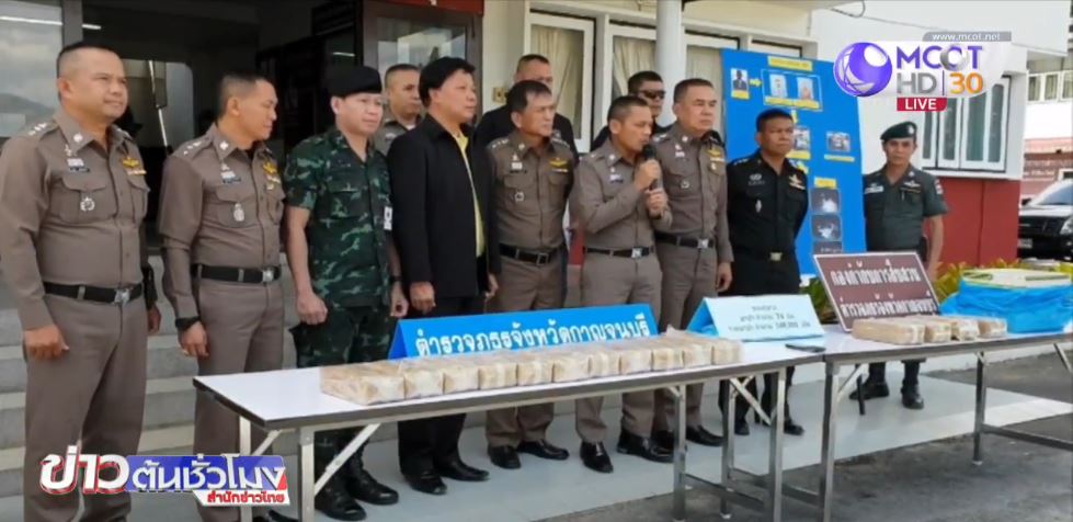 กาญจนบุรี 11 ธ.ค.- ตำรวจชุดสืบสวนภูธรจังหวัดกาญจนบุรี และกำลังทหารมณฑลทหารบกที่ 17 จับกุมผู้ต้องหาคดีค้ายาบ้ารายใหญ่ ในพื้นที่ อ.พนมทวน จ.กาญจนบุรี ได้ผู้ต้องหา 2 คน พร้อมของกลาง เป็นยาบ้า 148,000 เม็ด หลังสายข่าวแจ้งว่าจะมีการรับส่งยาบ้าลอตใหญ่จาก อ.สังขละบุรี มาส่งให้กับเอเย่นต์ใน อ.พนมทวน จ.กาญจนบุรี จึงจัดกำลังดักซุ่มอยู่ที่บริเวณริมถนนสายห้วยสะพาน-บ่อพลอย กระทั่งพบรถยนต์กระบะสีขาว ตรงตามรถเป้าหมาย ขับเข้ามาจอดบริเวณริมถนนทางเข้าวัดคงคาพี้ เจ้าหน้าที่จึงแสดงตัวเข้าตรวจค้น ภายในรถพบนายนิพนธ์ หรือสอด มณฑาทัศน์ อายุ 48 ปี เป็นคนขับ และ น.ส.รำเพย หรือ เพย ศรีโสภา อายุ 50 ปี นั่งถือลังน้ำมันเครื่องอยู่ในรถ เมื่อตรวจค้นลัง พบยาบ้า 55 มัด นายนิพนธ์รับสารภาพว่ายังมียาบ้าซุกซ่อนไว้อยู่ในไร่มันสำปะหลังบริเวณใกล้บ้าน