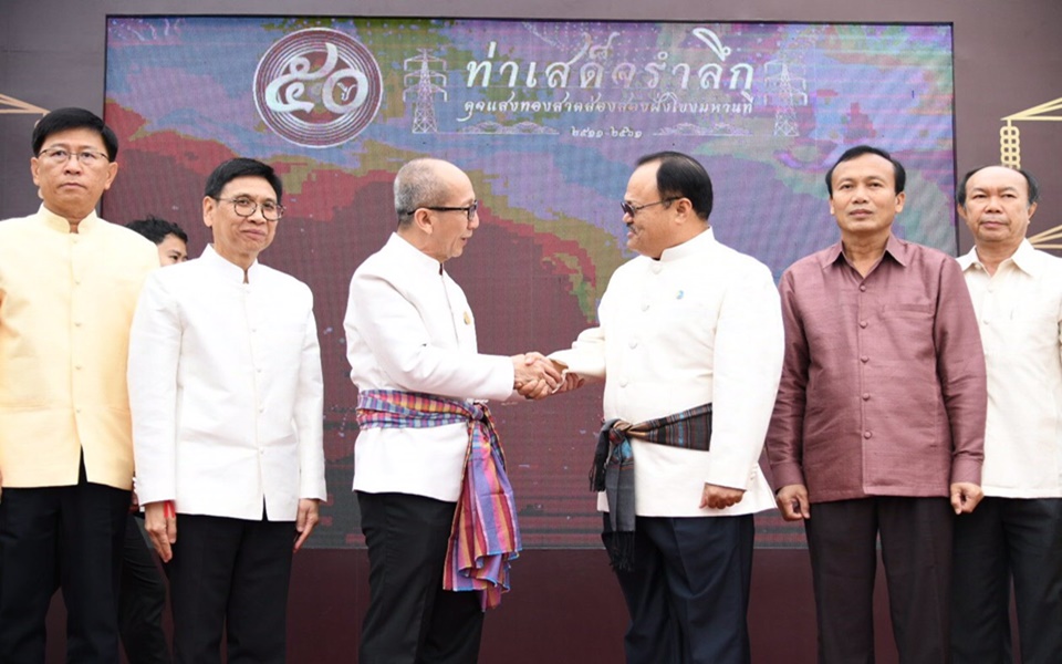 ผู้ว่าการ กฟผ. กล่าวต่อว่า ปีนี้นับเป็นโอกาสพิเศษที่ครบรอบ 50 ปีความสัมพันธ์ด้านพลังงานไทย – ลาว กระทรวงพลังงานของไทย และกระทรวงพลังงานและบ่อแร่ของ สปป.ลาว พร้อมทั้ง กฟผ. ฟฟล. และ จ.หนองคายได้ร่วมกันจัดกิจกรรมรำลึกถึงรัฐพิธีเปิดสายส่งไฟฟ้าแรงสูงต้นแรก โดยจัดงานขึ้นทั้งในฝั่งไทยและฝั่งลาว ระหว่างวันที่ 13 – 14 ธันวาคม 2561 ภายใต้ชื่องาน “50 ปี สายส่ง สานสัมพันธ์ พลังงาน ลาว – ไทย มั่นยืน” โดยวันที่ 13 ธันวาคม 2561 กิจกรรมช่วงเช้าในฝั่งไทย ได้แก่ กิจกรรมนุ่งไทยใส่บาตรริมแม่น้ำโขง ที่ชุมชนตลาดท่าเสด็จ จ.หนองคาย เพื่อถวายเป็นพระราชกุศลฯ พระบาทสมเด็จพระปรมินทรมหาภูมิพลอดุลยเดช บรมนาถบพิตร และพิธีเปิดนิทรรศการ “50 ปี ท่าเสด็จรำลึก ดุจแสงทองสาดส่องสองฝั่งโขงมหานที” ณ ชุมชนตลาดท่าเสด็จ อ.เมือง จ.หนองคาย เพื่อรำลึกถึงรัฐพิธีเปิดสายส่งไฟฟ้าแรงสูง และพระราชกรณียกิจเกี่ยวกับกิจการด้านพลังงาน รวมถึงวิถีชีวิตของประชาชนริมฝั่งแม่น้ำโขงตั้งแต่อดีตจนถึงปัจจุบัน นอกจากนี้ ยังมีพิธีรำลึกถึงพระมหากรุณาธิคุณในหลวง ร.9 โดยได้รับเกียรติจาก อ.เนาวรัตน์ พงษ์ไพบูลย์ และ อ.ธนิสร์ ศรีกลิ่นดี ศิลปินแห่งชาติ ร่วมกันขับลำนำบทสดุดีกวีรำลึก และมีกิจกรรมจากชุมชนตลาดท่าเสด็จอีกมากมาย โดยนิทรรศการดังกล่าวจะเปิดให้ประชาชนเข้าชมระหว่างวันที่ 13 – 16 ธันวาคม 2561.-สำนักข่าวไทย