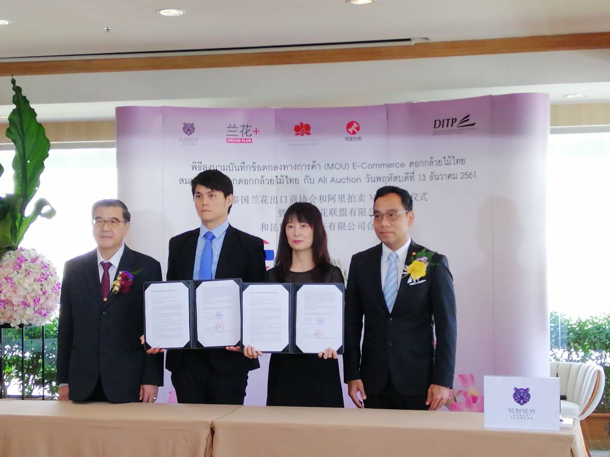 นายพรชัย ตระกูลวรานนท์ ที่ปรึกษารองนายกรัฐมนตรีและที่ปรึกษารัฐมนตรีว่าการกระทรวงพาณิชย์ ร่วมเป็นสักขีพยานการลงนามความร่วมมือระหว่างสมาคมผู้ส่งออกดอกกล้วยไม้ไทย และ Ali Auction ซึ่งเป็นแพลตฟอร์มประมูลออนไลน์ภายใต้อาลีบาบากรุ๊ป เพื่อเร่งผลักดันดอกกล้วยไม้ไทยสู่ตลาดจีนผ่านการขายในระบบอี-คอมเมิร์ซที่เกิดขึ้นจากความร่วมมือระหว่างสมาคมผู้ส่งออกดอกกล้วยไม้ไทยและ Ali Auction ซึ่งเป็นแพลตฟอร์มการประมูลออนไลน์ใหญ่ที่สุดของจีนทั้งผู้ขายส่งและผู้บริโภค โดยเป็นผลจากความร่วมมือระหว่างกระทรวงพาณิชย์กับกลุ่มอาลีบาบาในการส่งเสริมผลิตภัณฑ์ทางการเกษตรของไทยสู่ตลาดจีนและสร้างนวัตกรรมทางการเกษตรผ่านช่องทางดิจิทัล