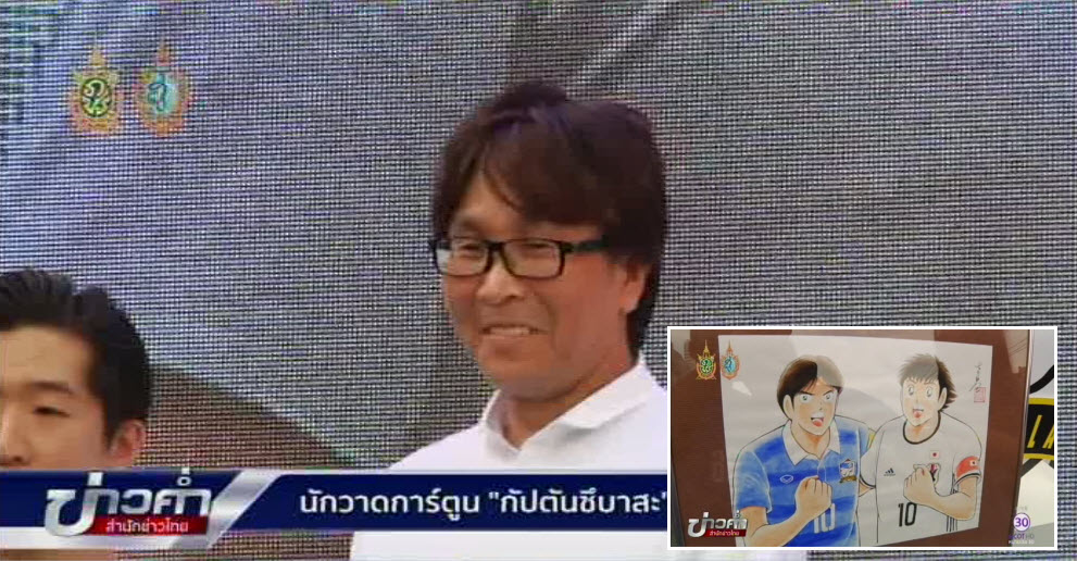 กรุงเทพฯ 6 ก.ย.-โยอิชิ ทาคาฮาชิ นักวาดการ์ตูนกัปตันซึบาสะ ตำนานลูกหนังในจินตนาการของเด็กและแฟนบอลทั่วโลก มาไทยเพื่อวาดภาพตัวการ์ตูนชื่อดังเป็นที่ระลึก และร่วมเชียร์ทีมฟุตบอลไทยและญี่ปุ่นในการแข่งขันฟุตบอลโลก รอบคัดเลือกโซนเอเชีย ค่ำนี้ และให้สัมภาษณ์แก่สำนักข่าวไทยด้วย