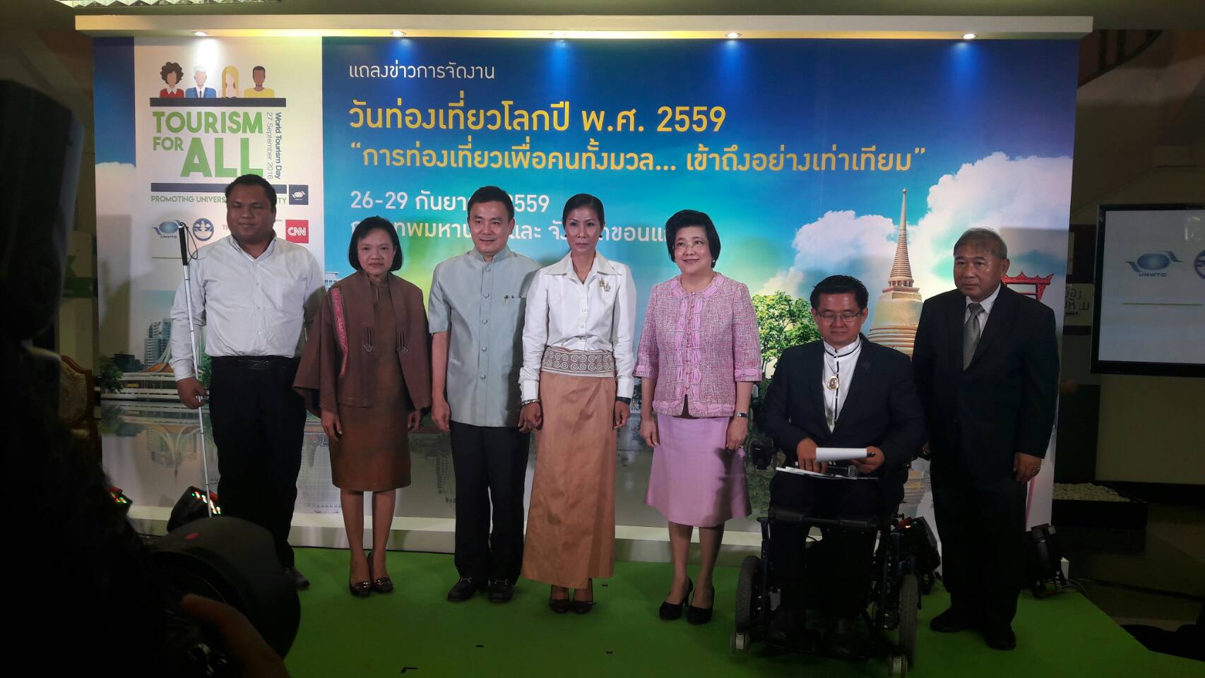 กระทรวงท่องเที่ยว 6 ก.ย.- รัฐมนตรีท่องเที่ยวฯ เผย ไทยพร้อมเป็นเจ้าภาพ วันท่องเที่ยวโลก 2559 ที่กรุงเทพฯและขอนแก่น แสดงศักยภาพด้านการท่องเที่ยวของไทยสู่เวทีโลก เน้นการส่งเสริมเข้าถึงการท่องเที่ยวอย่างเท่าเทียม