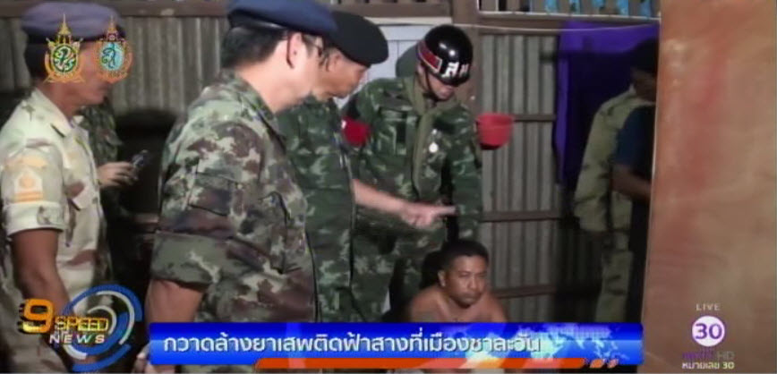 ทหารกองกำลังรักษาความสงบ มณฑลทหารบกที่ 36 ร่วมกับฝ่ายปกครองและ ป.ป.ส.ภาค 6 เปิดยุทธการฟ้าสางที่เมืองชาละวัน ปฏิบัติการจู่โจมกวาดล้างยาเสพติด เข้าปิดล้อมหมู่บ้านเป้าหมายตำบลปากทาง อำเภอเมืองพิจิตร จับกุมตัวนายสุรพล สีจันทร์ พร้อมพวกรวม 3 คน จากการตรวจค้นห้องนอนพบยาบ้า อาวุธปืนและเครื่องกระสุนปืนอีกจำนวนหนึ่ง นอกจากนี้ยังนำกำลังเข้าตรวจค้นพื้นที่เป้าหมายอีกว่า 10 แห่ง ที่อำเภอเมือง อำเภอสามง่าม และอำเภอสากเหล็ก จับกุมตัวผู้ต้องหาคดียาเสพติดได้อีกเป็นจำนวนมาก.-สำนักข่าวไทย
