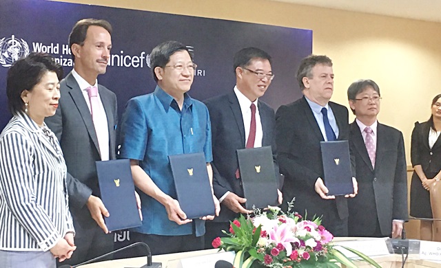 สธ.6 ก.ย.- สธ.ลงนามร่วมเอกชน ยูนิเซฟ ดูแลสุขภาพเด็กในแรงงานต่างด้าว หวังลดโรคป้องกันโรคระบาด สนับสนุนให้นายจ้างซื้อบัตรสุขภาพให้เด็กลูกแรงงานต่างด้าว 365 บาท