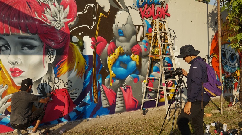 นราธิวาส 24 ธ.ค.- ศิลปิน Street Art ทั้งไทยและต่างชาติมาด้วยใจล่องชายแดนใต้ทำกิจกรรม The Color Of Kolok สร้างงานศิลปะผสานวัฒนธรรมท้องถิ่นสุไหงโก-ลก จุดเช็คอินของนราธิวาส ประชาชนชื่นชอบแชร์ความสุขรับปีใหม่ผ่านโซเชียล