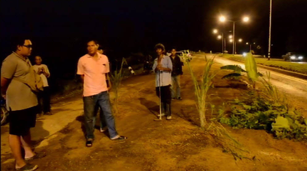 พนักงานของบริษัทผู้รับเหมาบอกว่า ถนนจุดดังกล่าวเกิดการยุบตัว อยู่ระหว่างการซ่อม โดยนำดินมาอัด แต่เนื่องจากมีรถวิ่งตลอดเวลา ทำให้เกิดหลุมขนาดใหญ่ขึ้น. – สำนักข่าวไทย