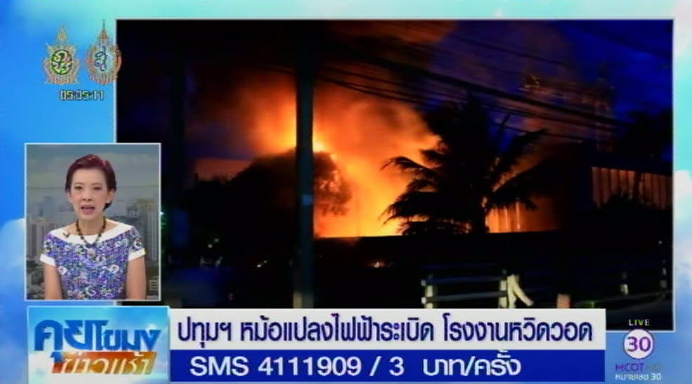 ปทุมธานี 6 ก.ย. – โรงงานในนิคมอุตสาหกรรมนวนคร หวิดวอด หม้อแปลงไฟฟ้าระเบิดไฟลุกท่วม เจ้าหน้าที่ดับทัน
