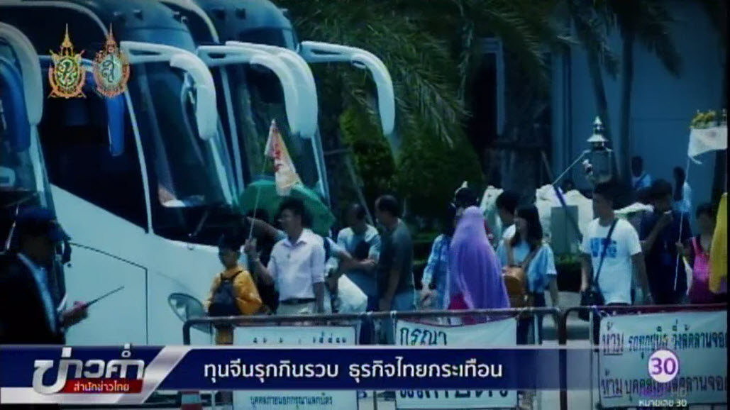 รถโดยสารเพื่อการท่องเที่ยวไม่ต่ำกว่า 2,000 คัน ของผู้ประกอบการไทยหลายราย ที่เคยมีรายได้หลักจากกรุ๊ปทัวร์จีน จอดอยู่เต็มลานจอดของสมาคมผู้ประกอบการรถขนส่งทั่วไทย ย่านนนทบุรี เพราะไม่มีงานให้วิ่ง ไม่มีรายได้ สวนทางกับยอดนักท่องเที่ยวจีน ที่มาเที่ยวไทยปีละเกือบ 8 ล้านคน ในจำนวนนี้มากกว่าร้อยละ 70 ซื้อทัวร์จากจีน ซึ่งส่วนใหญ่เป็นทัวร์ศูนย์เหรียญ และทัวร์คิกแบ็ก รถโดยสารนำเที่ยวที่ทัวร์จีนในไทยใช้ จึงถูกผูกขาดอยู่ในเครือของนายทุนใหญ่ 2 ราย
