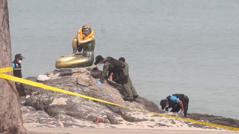 สงขลา 27 ธ.ค.- จนท.เร่งหาเบาะแสมือระเบิดวางหาดสมิหลาเมื่อคืนนี้ ส่งผลปลายหางรูปปั้นนางเงือกขาด เก็บชิ้นส่วนเทียบประกอบหาวิถีระเบิด ยังไม่สรุปเป็นกลุ่มก่อกวนชายแดนใต้