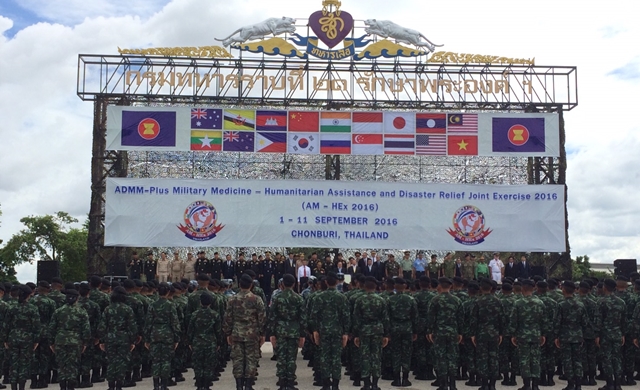 พล.อ.ประวิตร วงษ์สุวรรณ รองนายกรัฐมนตรีและรัฐมนตรีว่าการกระทรวงกลาโหม เป็นประธานเปิดการฝึกร่วมระหว่างคณะทำงานผู้เชี่ยวชาญด้านการแพทย์ทหารกับคณะทำงานผู้เชี่ยวชาญด้านการให้ความช่วยเหลือด้านมนุษยธรรมและการบรรเทาภัยพิบัติ (ADMM-Plus Military Medicine-Humanitarian Assistance and Disaster Relief Joint Exercise 2016 : AM-HEx 2016) โดยมีรัฐมนตรีช่วยว่าการกระทรวงกลาโหม ปลัดกระทรวงกลาโหม ผู้บัญชาการทหารสูงสุด ผู้บัญชาการเหล่าทัพ และผู้แทนส่วนราชการที่เกี่ยวข้องของประเทศไทยเอกอัครราชทูต ผู้ช่วยทูตฝ่ายทหารจากประเทศสมาชิกอาเซียนและประเทศคู่เจรจา รวมทั้งผู้แทนจากองค์การระหว่างประเทศที่เกี่ยวข้อง เข้าร่วมพิธีเปิดการฝึกฯ ณ ค่ายนวมินทราชินี จังหวัดชลบุรี กรมทหารราบที่ 21 รักษาพระองค์ (ร.21รอ.)