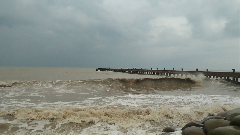 นครศรีธรรมราช 3 ม.ค.- นครศรีฯ ฟ้าครึ้มแต่เช้า ชายฝั่งทะเลหัวไทรเริ่มมีคลื่นลมแรง จังหวัดเปิดศูนย์รองรับอพยพประชาชนพื้นที่เสี่ยงชายฝั่ง หากได้รับผลกระทบจากพายุปาบึก